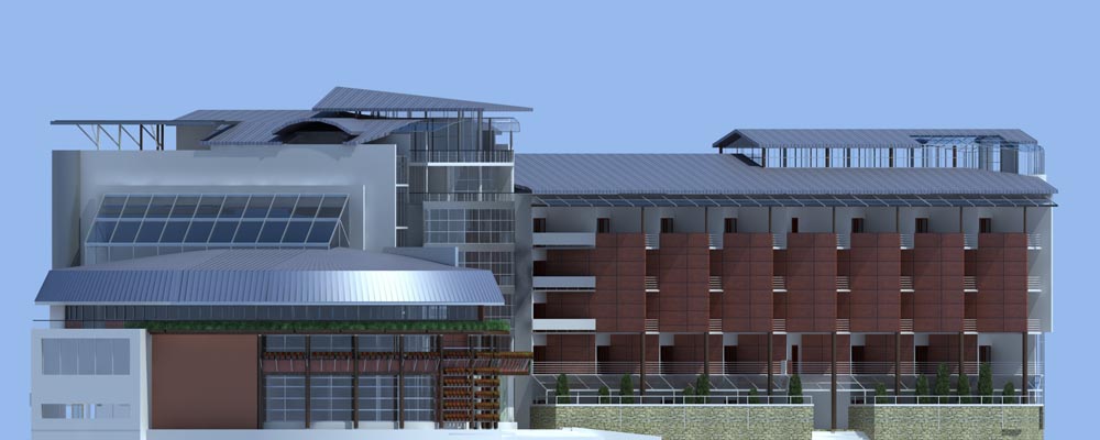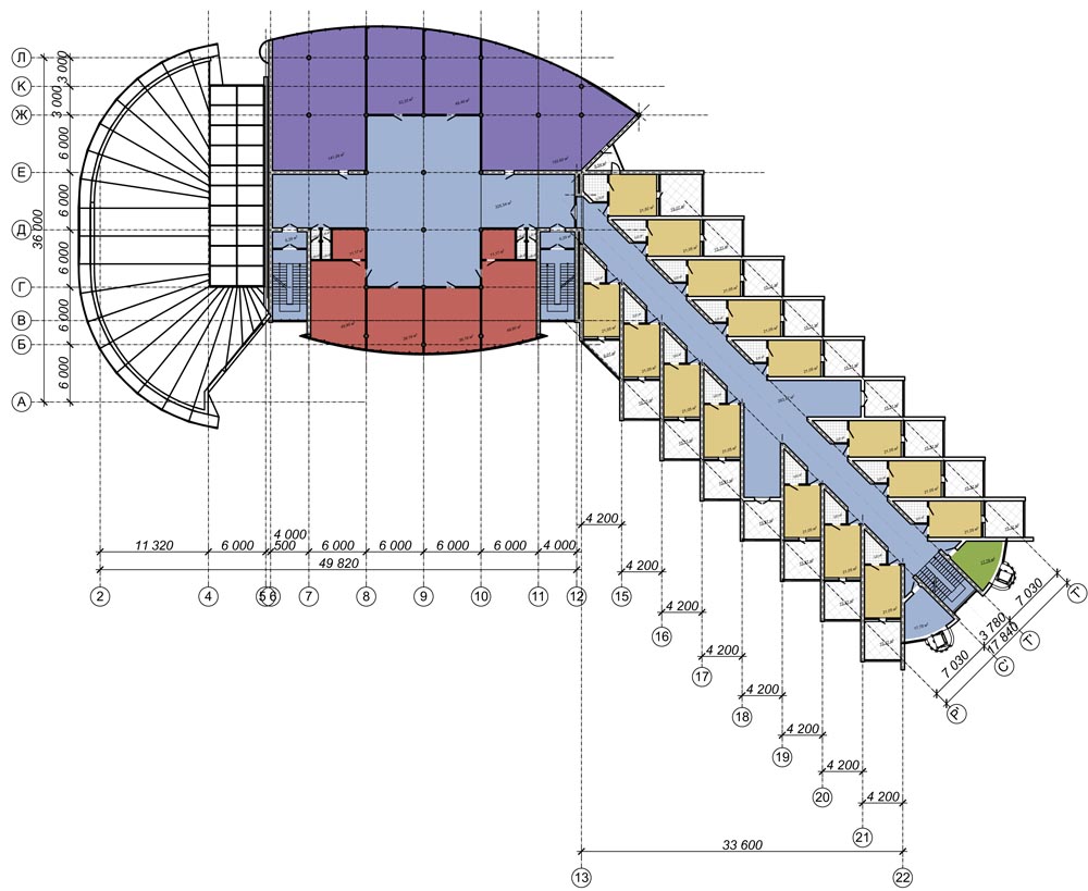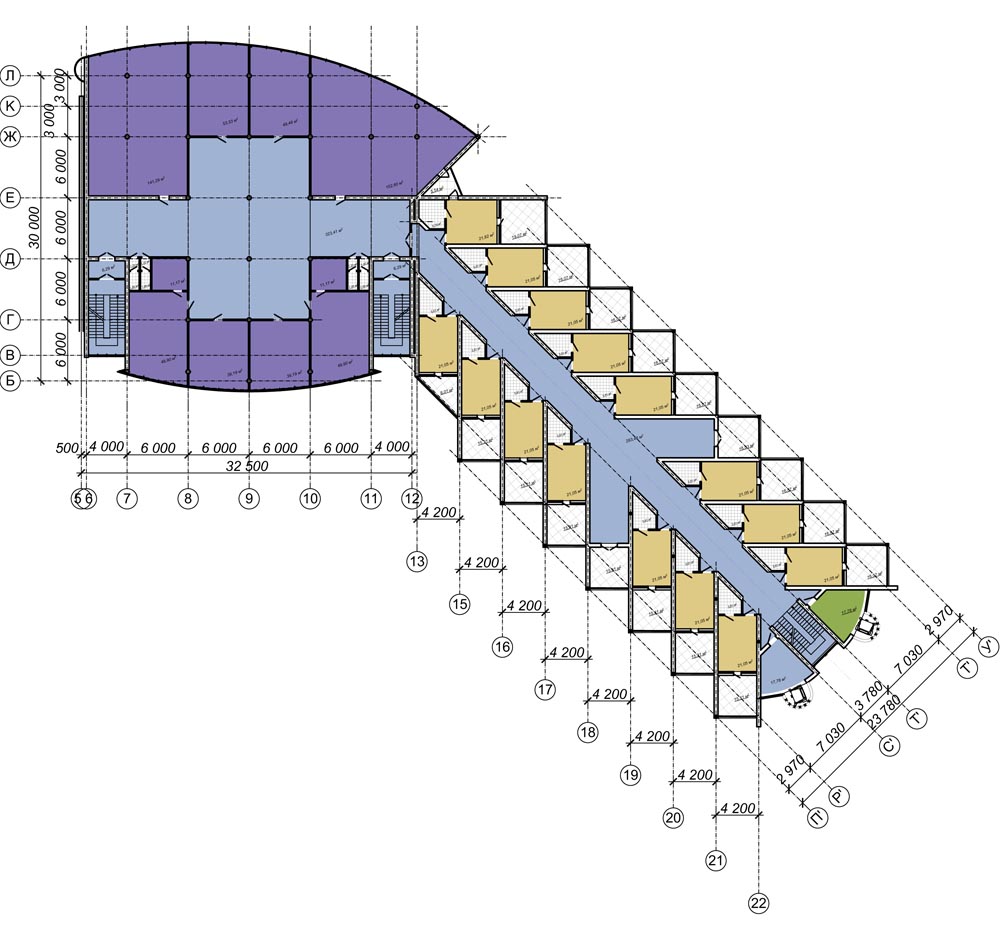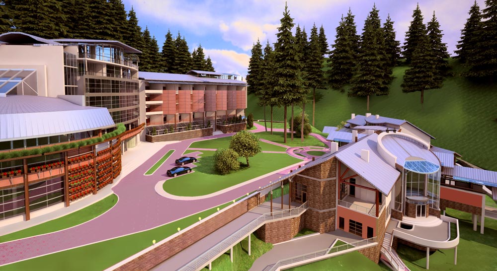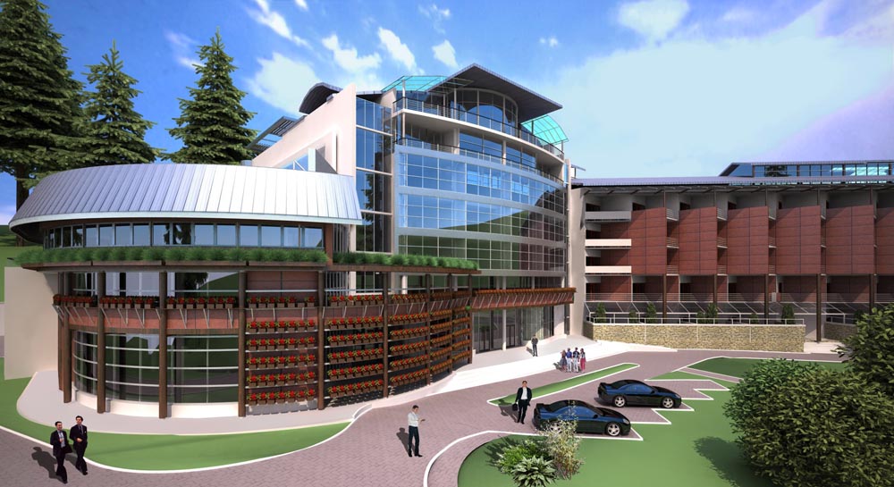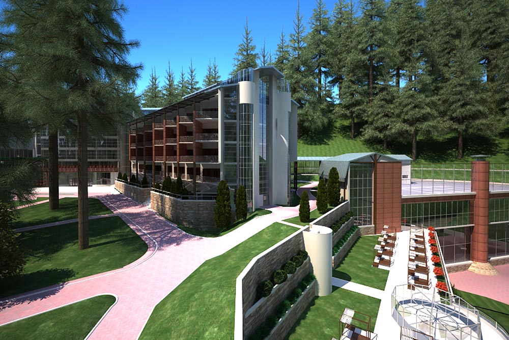 - спальний корпус – п’ятиповерховий, сполучений критим переходом (на рівні другого поверху) з спортивно-розважальним центром