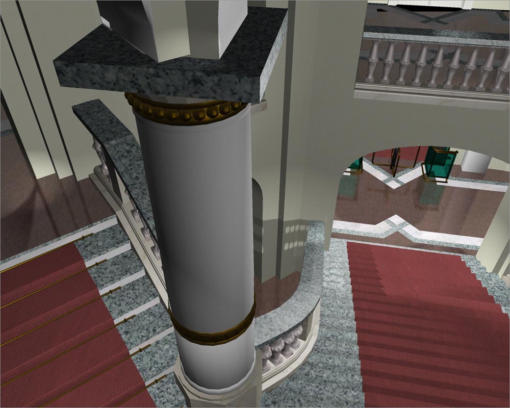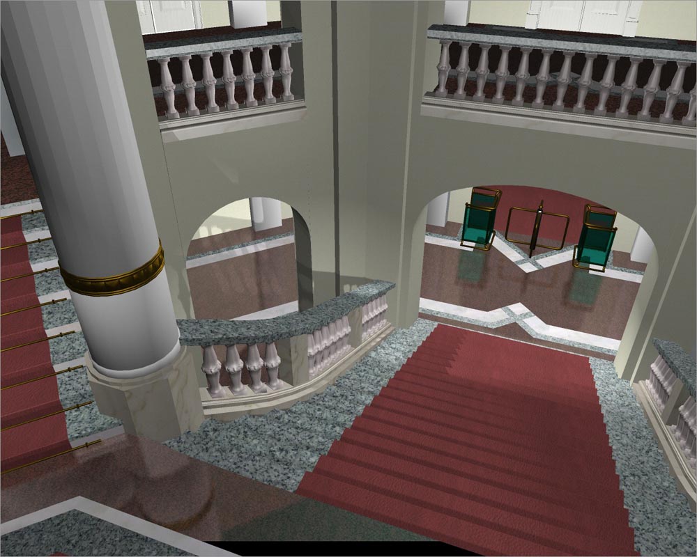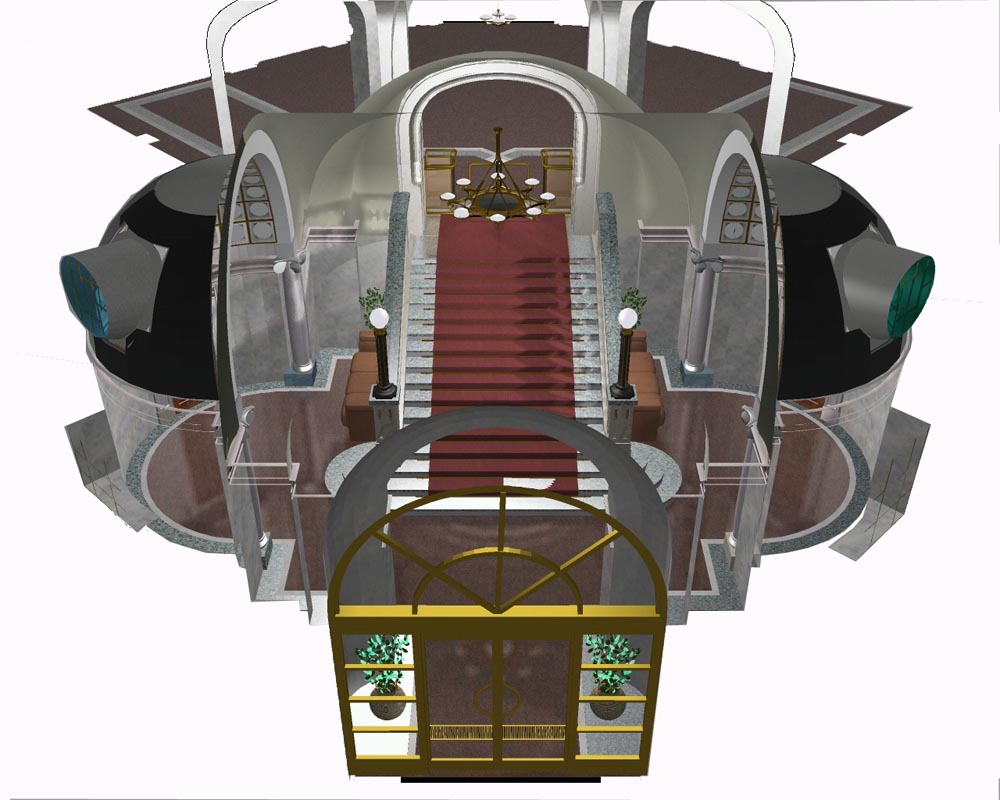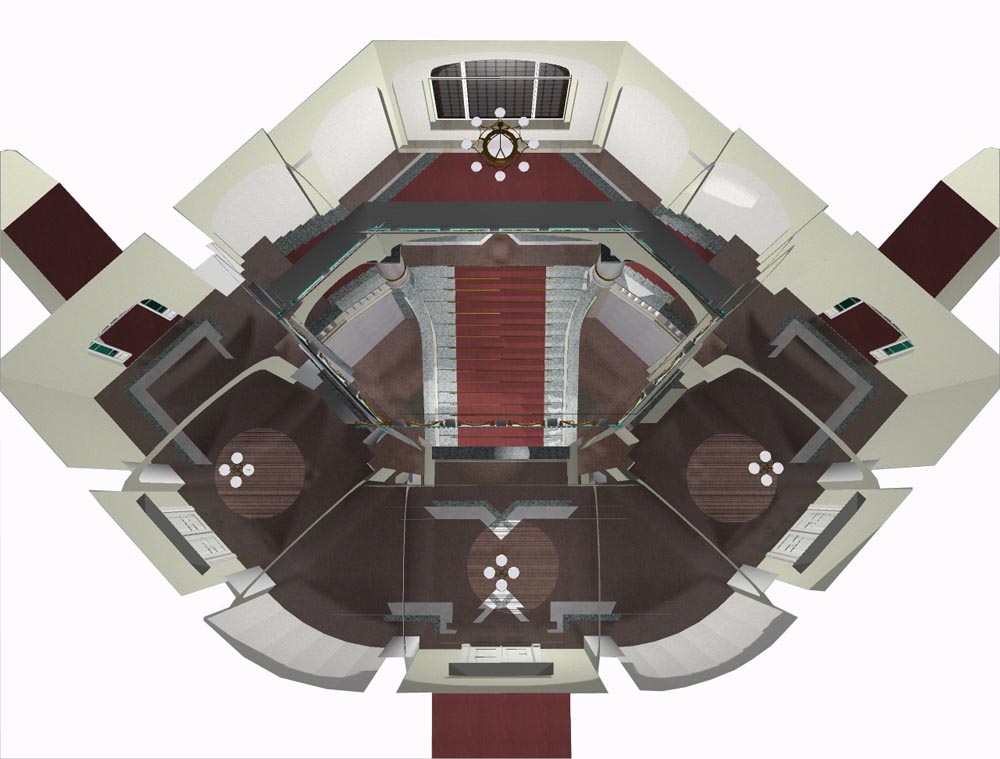 В складі проектноі документаціір опрацьовані основні приміщення будинку-центральний хол зі сходовими маршами,коридорами і галереями центральноі сходовоі кліті,актова зала, кафе-столова, кабінети начальника залізниці і його перших заступників, санітарно-побутові кімнати на всіх поверхах.
