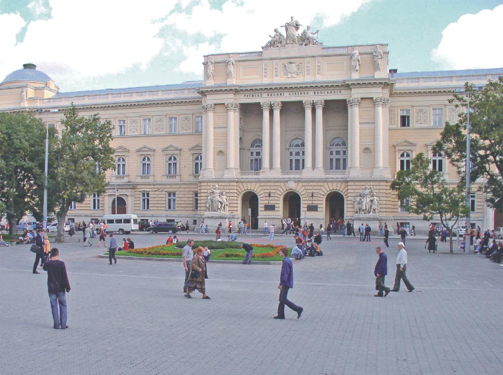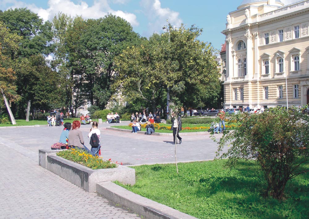 Нижня зона парку сформована головною віссю фасаду Університету і пам’ятником Ів.Франку-запроектована як зона партерних садів.В цій репрезентативній частині парку,розкритій на оточуючу архітектуру використані найбільш коштовні будівельні матеріали: граніт,пісковик,андезитова і пісковикова шашка тощо.