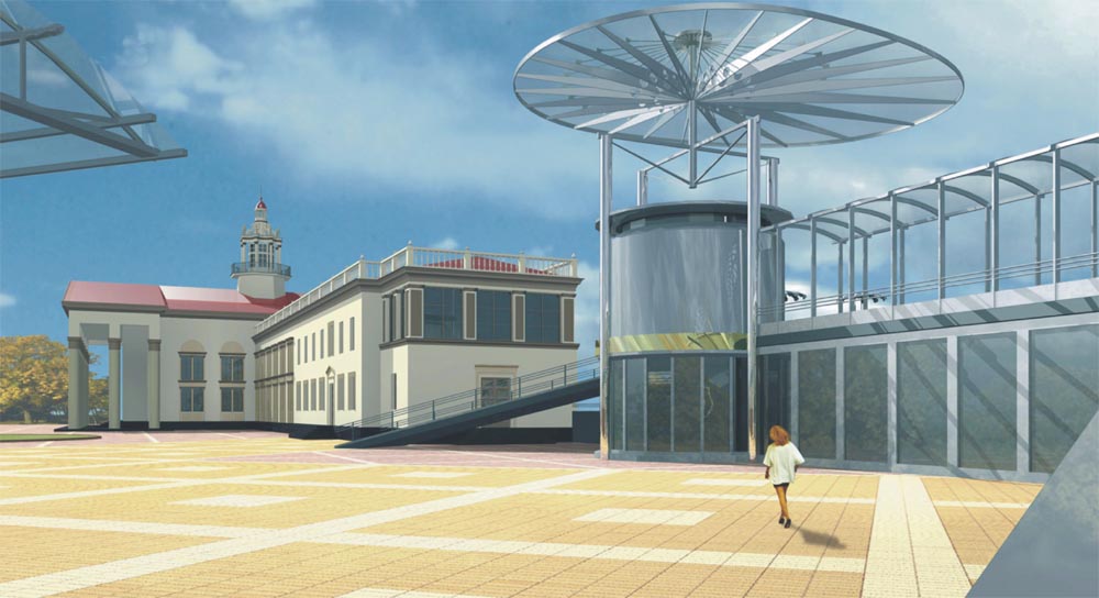 Існуючий будинок аеровокзалу згідно зі своєю структурою може бути переобладнаний виключно на офісно-відпочинковий центр. Ліве та праве загальні крила перетворюються в систему "зимових" садів з рестораном та фітобаром. Адміністративні приміщення 2-го поверху пристосовуються під офіси міжнародних перевізників