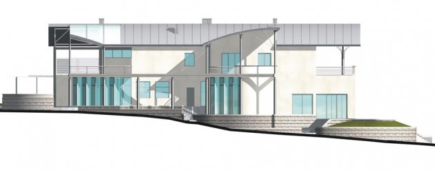 Віла запроектована для приватного інвестора на складному рельєфі з перепадом відміток по довжині будинку -3м в складі жилоі групи з двох віл (на першу чергу будівництва) в мальовничому селі Підгірне під Львовом.