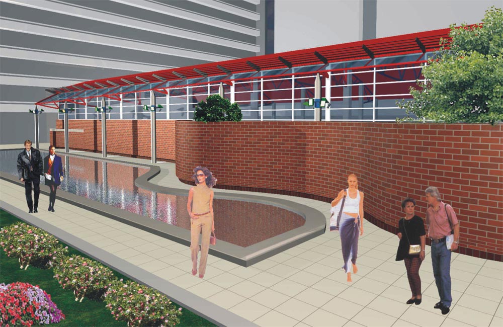 Зовнішні стіни – ефективна цегляна кладка в півтори цегли з внутрішнім заповненням ізоляційними плитами фірми "DOW". Зовнішній шар стіни –обличкувальна цегла Слобожанського керамічного заводу. Вітражі – металопластикові склопакети.