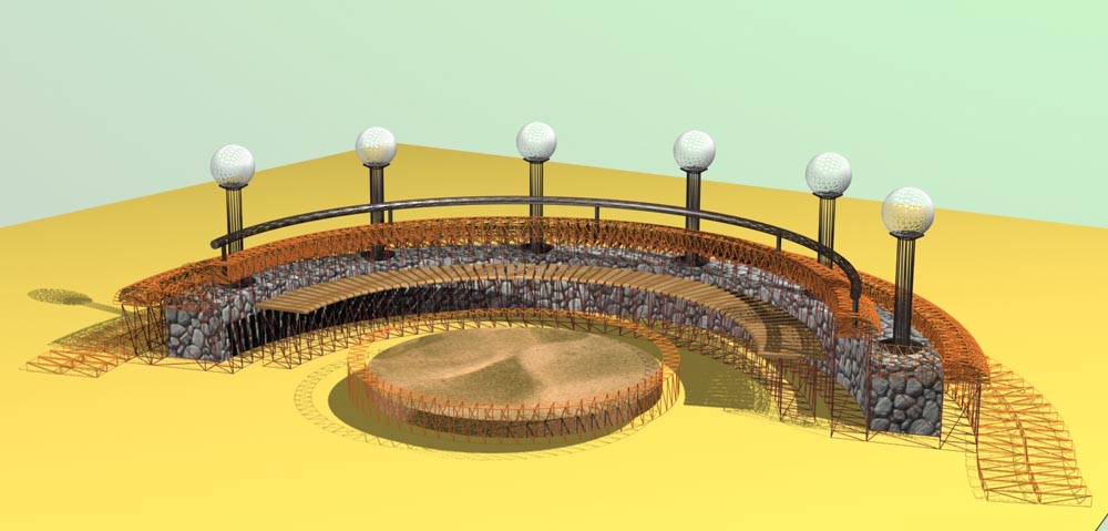 Головний фасад,що виходить на вул. Володимира Великого запроектований в вигляді п’яти паркових ферм,радіусом 8.4м,що горизонтальною хвилястою лінією контрастує з вертикально розташованим членінням будинку ЦУМу