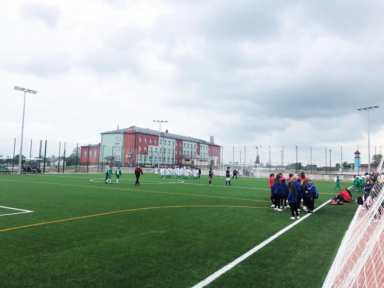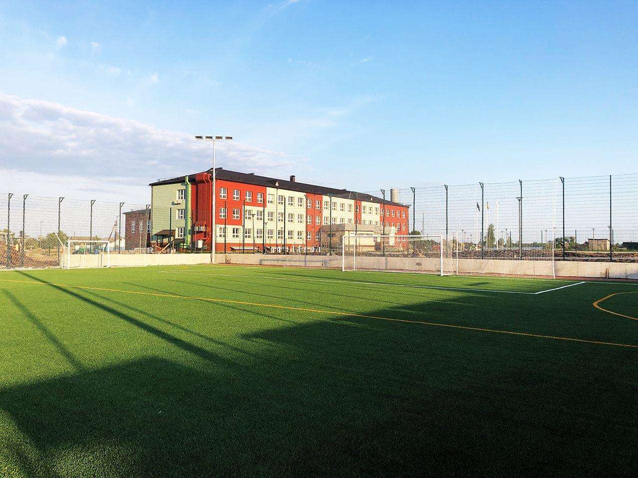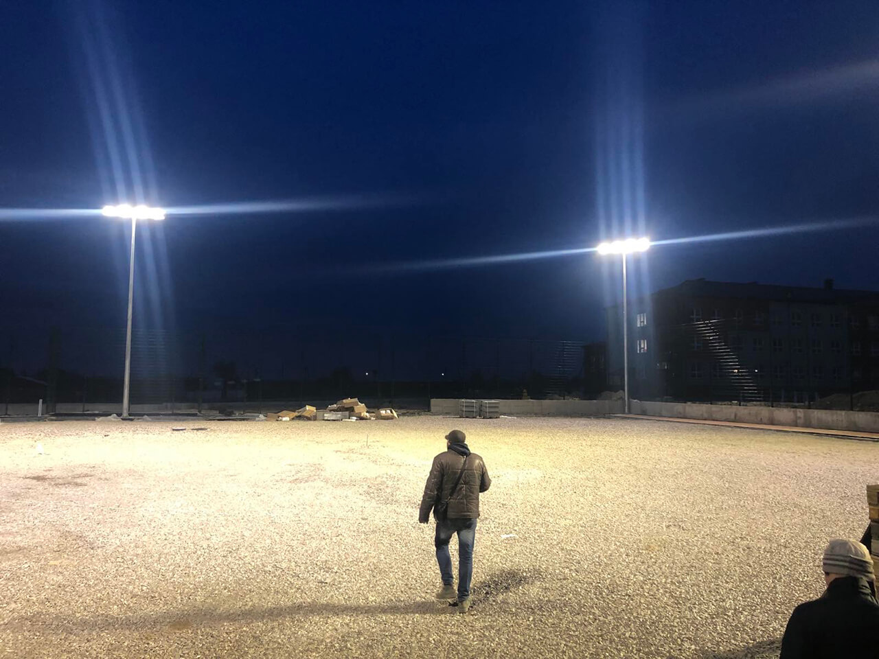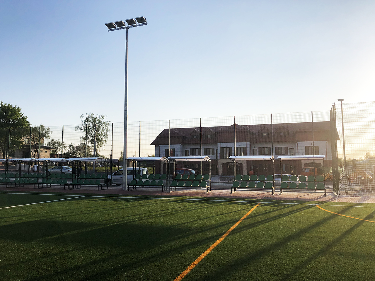 Стадіон обладнано трибунами та професійним освітленням, яке дозволяє проводити міні-футбольні матчі з можливістю телевізійної трансляції.